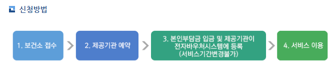 - 본인부담금 입금 및 제공기관이 전자바우처시스템 등록(서비스 기관 변경불가)